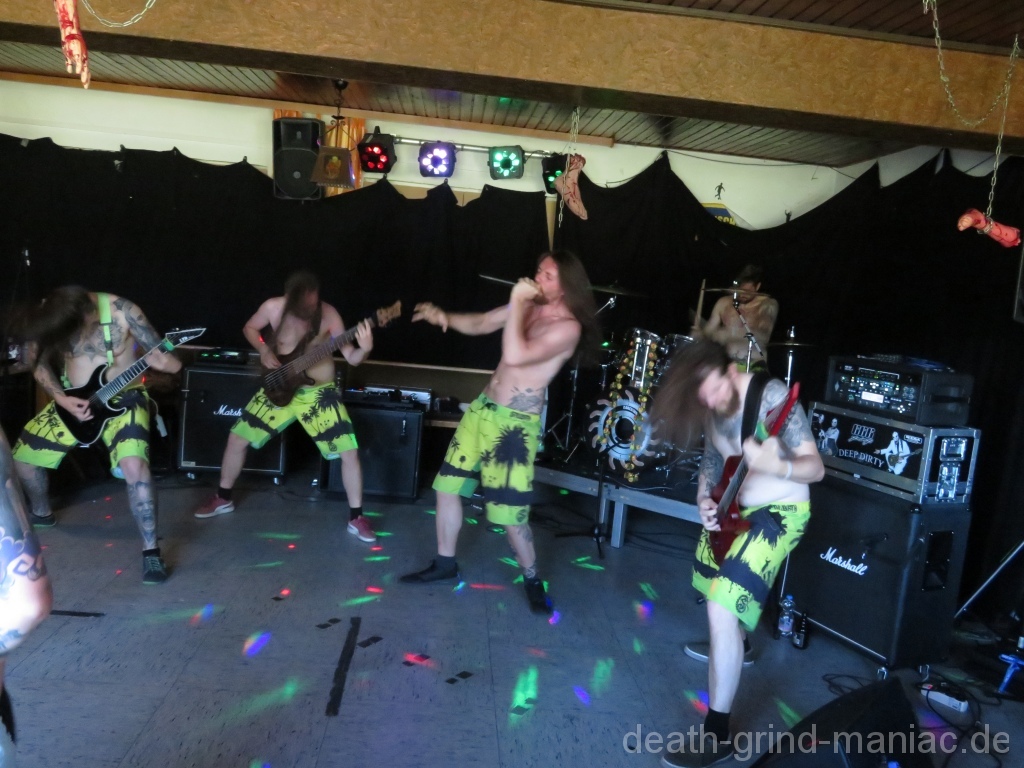 Der Abend ging dann weiter mit Gutslit und schönen Brutal Death Metal mit ordentlichen Bree. Empfehlenswert ist hier auch neben ihrer Musik, ihr wirklich kreatives Merch. Sie gewannen definitiv den Design-Award des Abends.