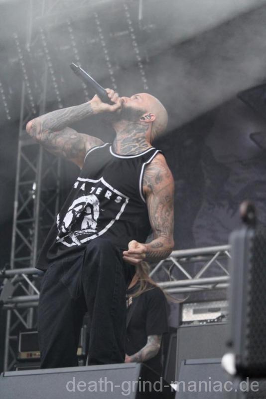 Ähnlich war es dann bei Karg, nur nochmal auf eine andere Weise. Das war insgesamt schwerer, melancholischer und irgendwie auch näher dran an diesem Gefühl, das man auf dem Party.San gerade abends oder im Zelt besonders gut aufnehmen kann. Solche Bands leben nicht nur von Druck, sondern vor allem davon, dass sie eine Stimmung erzeugen. Wenn das funktioniert, bleibt so ein Auftritt oft länger hängen als manches größere Geballer. Und genau das war hier der Fall.
