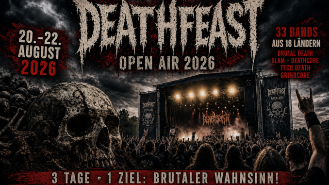 Das Deathfeast Open Air 2026 sieht nach einem sehr stabilen Wochenende für alle aus, die es brutal mögen. 33 Bands aus 18 Ländern, dazu ein Billing zwischen Brutal Death Metal, Slam, Deathcore, Tech Death und Grind. Viel internationaler Underground, ein paar dicke Namen und genug Bands, bei denen man vermutlich erst nach dem Festival wieder merkt, wie sehr der Nacken eigentlich gelitten hat.