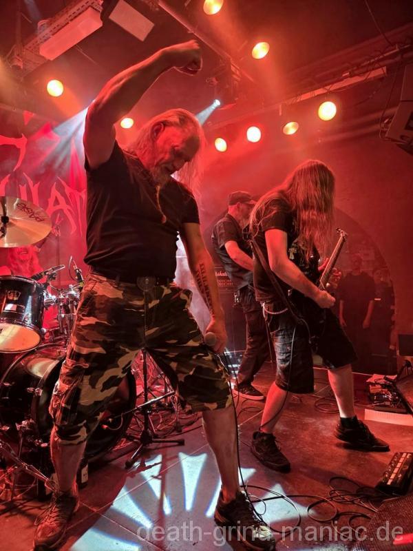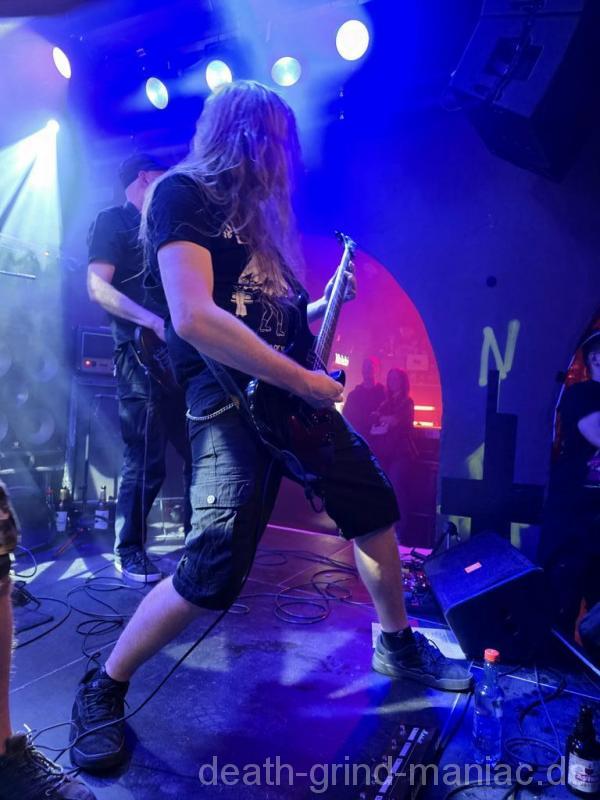 Das Intro noch kaum verklungen, zündet die Truppe direkt mit „The Smell of Death“ – und Junge, der Name war Programm. Keine Gnade, keine Pause, einfach volle Breitseite. Danach knallten sie uns „Vader“, „Gone“, „Instinct“ und das herrlich rohe „Iron Fist“ um die Ohren. Zwischendurch immer wieder laute Rufe nach „Dance With Me“ – ganz klar: das Publikum wusste, was es will.