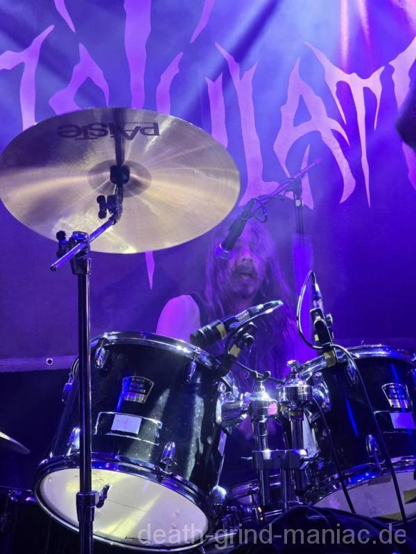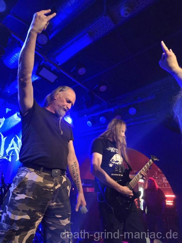 Doch bevor die Nostalgie-Keule schwang, durfte sich das Publikum durch drei Thrash-Bands prügeln lassen. Solides Warm-Up, Bier lief, Nacken wärmten sich auf – alles im grünen Bereich.