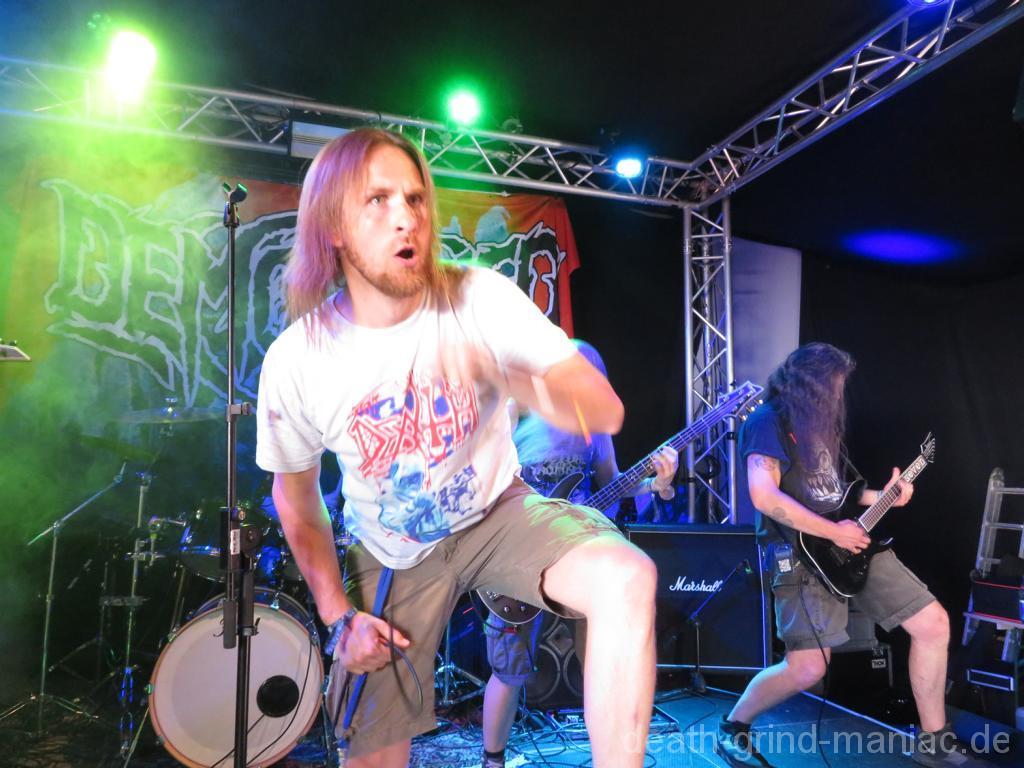 Am Samstag gab es erstmal ein Weißwurst Frühstück. Bevor es um 12 Uhr mit Sign of Death (Trash Metal) weiter ging. Überraschend schon als zweite Band die Brutal Slam Kombi Pusboil zu hören. Weiter ging es mit Oldschool Grind von Vibrio Cholera. Auch definitiv eine empfehlung. „Ruhiger“ ging es beim Death Metal von Demorphed zu. Bevor es wieder Slammig wurde mit Orphan Playground Sniper aus Berlin. Mein diesjähriger Highlight waren Vor die Hunde. Seit ich sie kennengelernt habe, standen Sie auf meiner Liste der Bands, die ich noch unbedingt mal Live sehen wollte! und was soll ich sagen? Es war ein gelungener Auftritt, hörte man auch durchweg durch den Reihen. Wer Sie noch nicht kennt und Grindcore mag, sollte unbedingt einmal reinhören. Bei HerezA und Gorgatron habe ich nur kurz jeweils reingehört und mir mal eine kleine Pause gegönnt. Bevor es mit Rottenness Death/Grind weiter ging. Und dann standen schon die Jungs von Nuclear Vomit auf der Bühne. Ebenfalls ein Auftritt auf dem ich mich sehr gefreut hatte den Abend. Nervecell aus Dubai kamen mit einer Portion Death Metal um die Ecke. Den Abschluss bildeten Acranius mit ihren Brutal Slam. Danach ging natürlich die legendäre Aftershow Party wieder los.