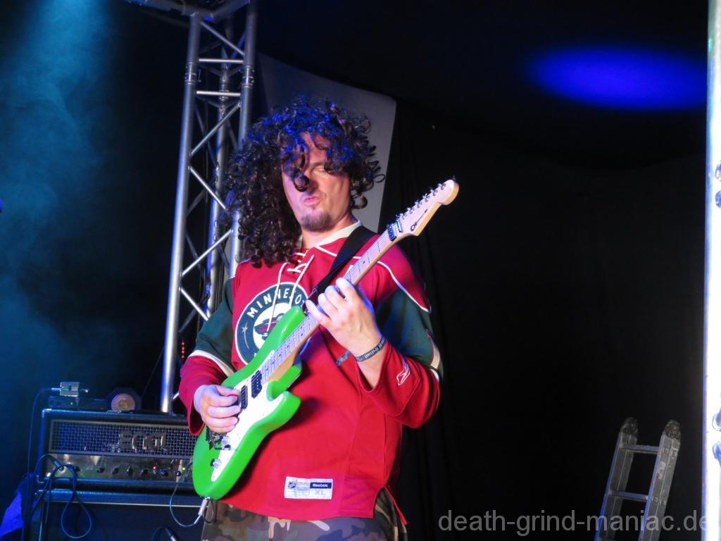 Die erste Band am Freitag war Knockdown Brutality eine Metalband aus Wetterau. Ein schöner opener zum einstimmen. Weiter ging es mit Farm Grind von Bitchfork, dem der ein oder andere sicherlich schon übern weg gelaufen ist. Nach dieser Nummer wurde es dann wieder ruhiger. Auf dem Programm stand WeedWizard. Wer die Jungs nicht kennt, sie machen Stoner Doom Metal. Viele O-Töne fanden die Kombi super, mich holt Stoner Doom eher selten ab. Dafür die nächste Band aber. Erst letztens noch auf den Knüppel aus dem Sack gesehen und nun wieder hier. Human Waste mit ihrem brachialen Brutal Death. I love it! Weiter ging es in dem Genre mit Braincasket und Pighead. Revel in Flesh habe ich verpasst. Die Jungs spielen aber inzwischen auch an gefühlt jeder zweiten Steckdose. Die Kultdeath Band habe ich dieses Jahr schon paar mal gesehen und es wird vermutlich auch nicht die letzte Chance gewesen sein. Als letzte Band standen dann 5 Stabbed 4 Corpses auf der Bühne, schöner Bloody Samba Grind. Für mich live das erste mal, aber machen definitiv nicht nur auf Scheibe bock!. Danach ging es mit DJ Grind am Pimmel in die Aftershow Party.