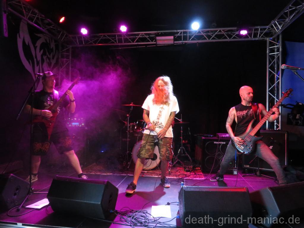 Am Samstag gab es erstmal ein Weißwurst Frühstück. Bevor es um 12 Uhr mit Sign of Death (Trash Metal) weiter ging. Überraschend schon als zweite Band die Brutal Slam Kombi Pusboil zu hören. Weiter ging es mit Oldschool Grind von Vibrio Cholera. Auch definitiv eine empfehlung. „Ruhiger“ ging es beim Death Metal von Demorphed zu. Bevor es wieder Slammig wurde mit Orphan Playground Sniper aus Berlin. Mein diesjähriger Highlight waren Vor die Hunde. Seit ich sie kennengelernt habe, standen Sie auf meiner Liste der Bands, die ich noch unbedingt mal Live sehen wollte! und was soll ich sagen? Es war ein gelungener Auftritt, hörte man auch durchweg durch den Reihen. Wer Sie noch nicht kennt und Grindcore mag, sollte unbedingt einmal reinhören. Bei HerezA und Gorgatron habe ich nur kurz jeweils reingehört und mir mal eine kleine Pause gegönnt. Bevor es mit Rottenness Death/Grind weiter ging. Und dann standen schon die Jungs von Nuclear Vomit auf der Bühne. Ebenfalls ein Auftritt auf dem ich mich sehr gefreut hatte den Abend. Nervecell aus Dubai kamen mit einer Portion Death Metal um die Ecke. Den Abschluss bildeten Acranius mit ihren Brutal Slam. Danach ging natürlich die legendäre Aftershow Party wieder los.