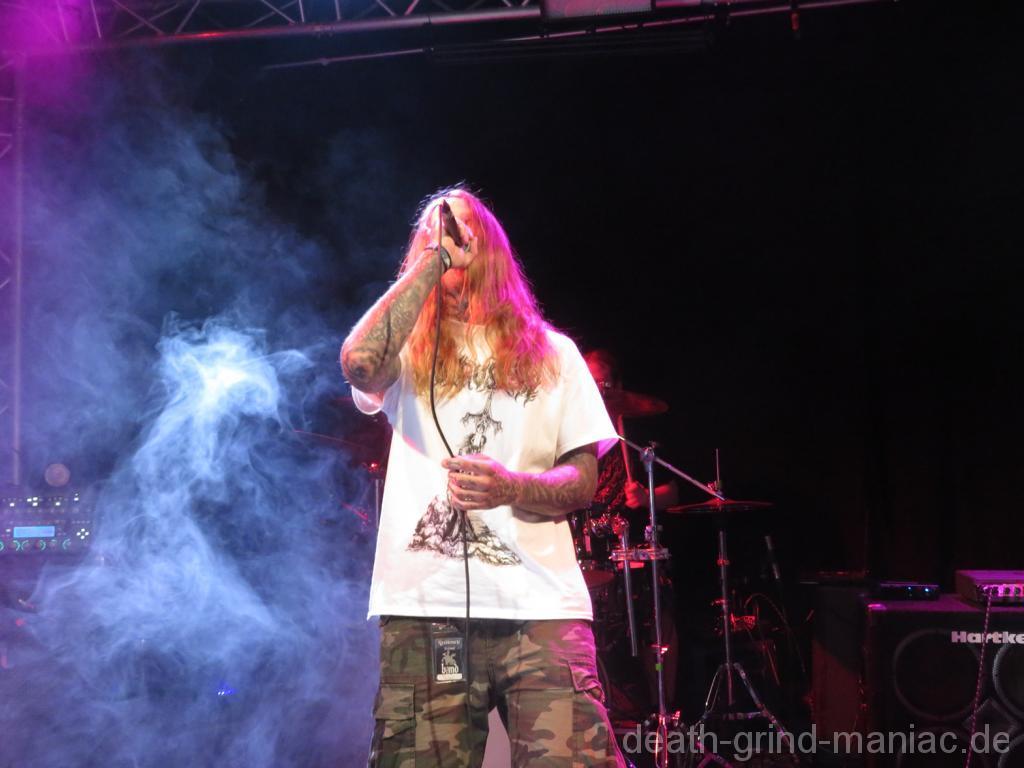 Am Samstag gab es erstmal ein Weißwurst Frühstück. Bevor es um 12 Uhr mit Sign of Death (Trash Metal) weiter ging. Überraschend schon als zweite Band die Brutal Slam Kombi Pusboil zu hören. Weiter ging es mit Oldschool Grind von Vibrio Cholera. Auch definitiv eine empfehlung. „Ruhiger“ ging es beim Death Metal von Demorphed zu. Bevor es wieder Slammig wurde mit Orphan Playground Sniper aus Berlin. Mein diesjähriger Highlight waren Vor die Hunde. Seit ich sie kennengelernt habe, standen Sie auf meiner Liste der Bands, die ich noch unbedingt mal Live sehen wollte! und was soll ich sagen? Es war ein gelungener Auftritt, hörte man auch durchweg durch den Reihen. Wer Sie noch nicht kennt und Grindcore mag, sollte unbedingt einmal reinhören. Bei HerezA und Gorgatron habe ich nur kurz jeweils reingehört und mir mal eine kleine Pause gegönnt. Bevor es mit Rottenness Death/Grind weiter ging. Und dann standen schon die Jungs von Nuclear Vomit auf der Bühne. Ebenfalls ein Auftritt auf dem ich mich sehr gefreut hatte den Abend. Nervecell aus Dubai kamen mit einer Portion Death Metal um die Ecke. Den Abschluss bildeten Acranius mit ihren Brutal Slam. Danach ging natürlich die legendäre Aftershow Party wieder los.