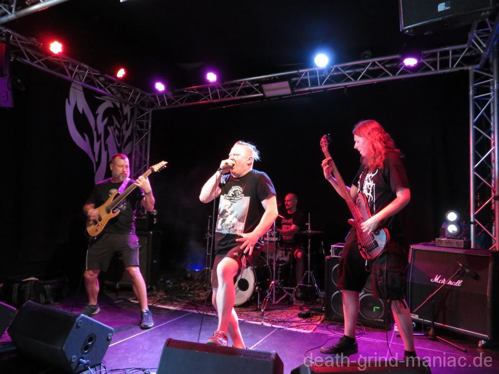 Am Samstag gab es erstmal ein Weißwurst Frühstück. Bevor es um 12 Uhr mit Sign of Death (Trash Metal) weiter ging. Überraschend schon als zweite Band die Brutal Slam Kombi Pusboil zu hören. Weiter ging es mit Oldschool Grind von Vibrio Cholera. Auch definitiv eine empfehlung. „Ruhiger“ ging es beim Death Metal von Demorphed zu. Bevor es wieder Slammig wurde mit Orphan Playground Sniper aus Berlin. Mein diesjähriger Highlight waren Vor die Hunde. Seit ich sie kennengelernt habe, standen Sie auf meiner Liste der Bands, die ich noch unbedingt mal Live sehen wollte! und was soll ich sagen? Es war ein gelungener Auftritt, hörte man auch durchweg durch den Reihen. Wer Sie noch nicht kennt und Grindcore mag, sollte unbedingt einmal reinhören. Bei HerezA und Gorgatron habe ich nur kurz jeweils reingehört und mir mal eine kleine Pause gegönnt. Bevor es mit Rottenness Death/Grind weiter ging. Und dann standen schon die Jungs von Nuclear Vomit auf der Bühne. Ebenfalls ein Auftritt auf dem ich mich sehr gefreut hatte den Abend. Nervecell aus Dubai kamen mit einer Portion Death Metal um die Ecke. Den Abschluss bildeten Acranius mit ihren Brutal Slam. Danach ging natürlich die legendäre Aftershow Party wieder los.
