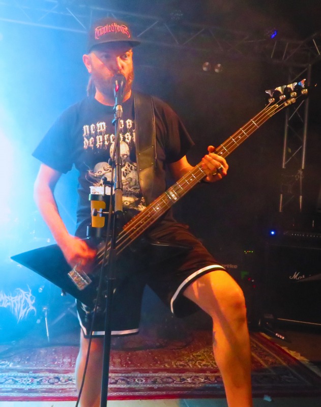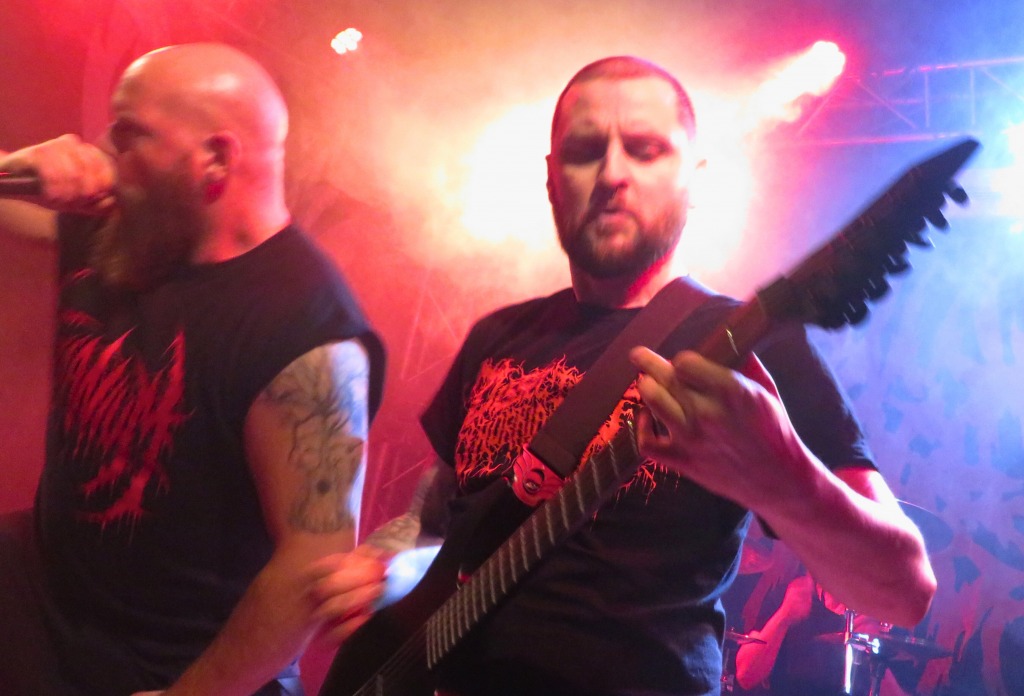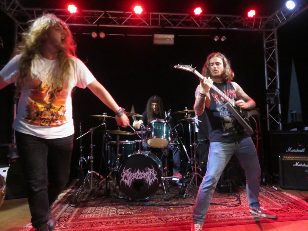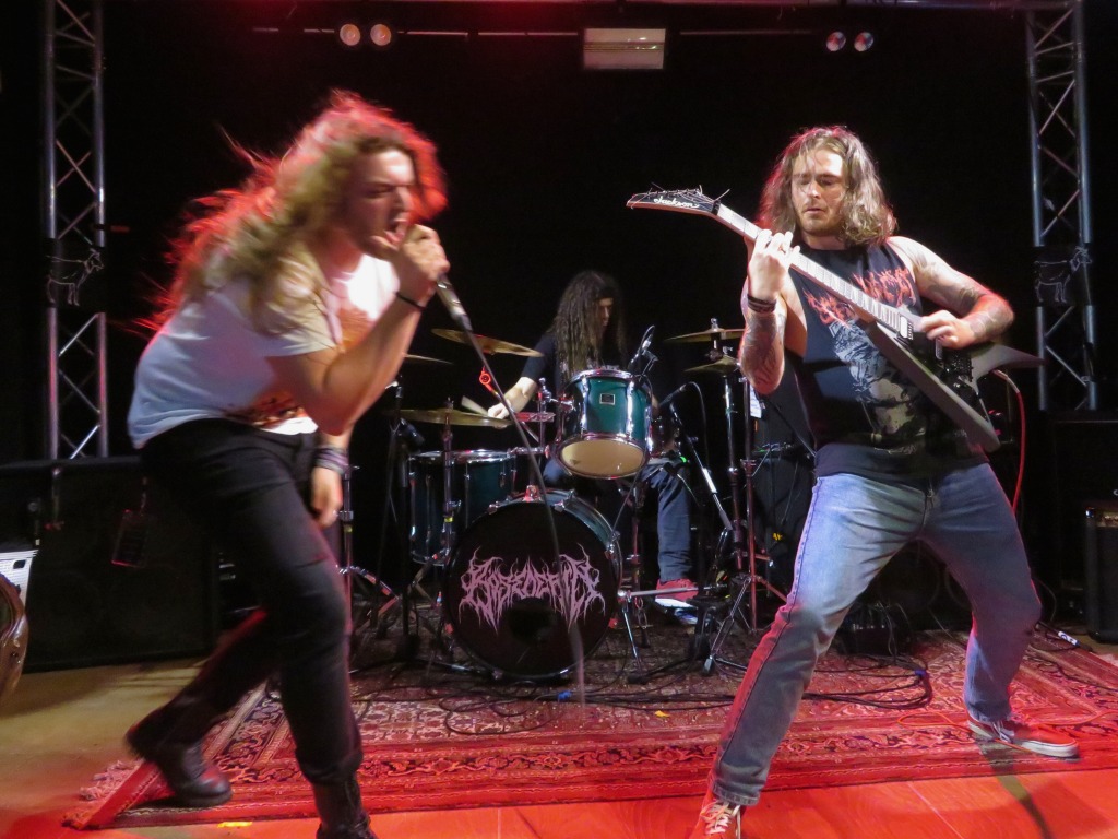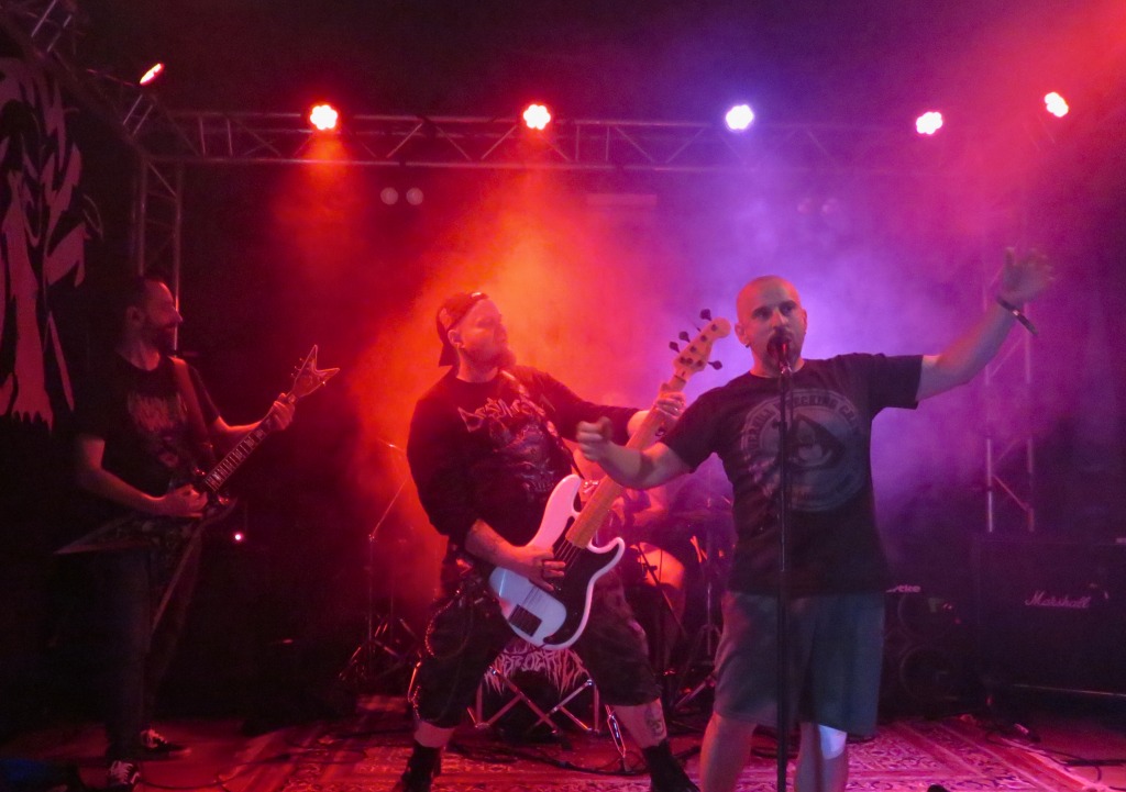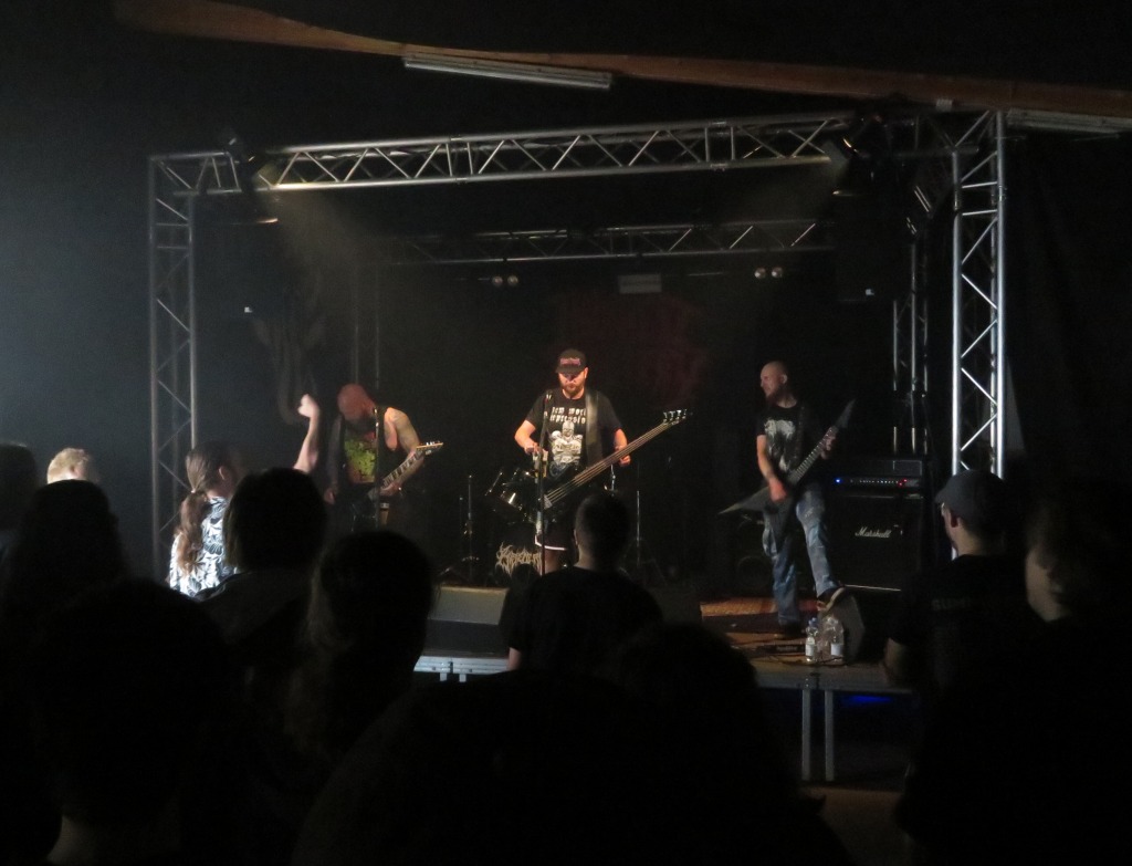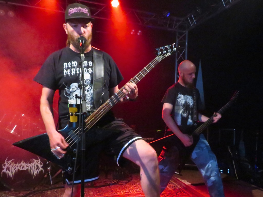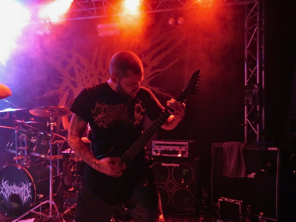 Pünktlich um 17:30 Uhr betrat die erste Band die Bühne. Haunted Cemetery aus Augsburg starteten gewaltig in die diesjährige Grabbenacht mit ihrem Death Metal. Ein beeindruckender Opener, der das Publikum direkt vor die Bühne lockte. Nach einer kurzen Umbaupause setzten Fleshsphere aus Heppenheim mit ihrem Death Metal fort. Public Grave brachten mit ihrem kraftvollen Death Metal die ersten Circle Pits in Gang, und es war Zeit, den Groovehammer auszupacken. Embrace your Punishment betraten die Bühne und brachten ihre geniale Brutal Death Metal-Performance mit Hardcore-Einflüssen auf die Bühne. Dann war es Zeit für Slam-Hammertime mit Begging for Incest aus Köln, die für alle Slam-Fans eine wahre Macht auf der Bühne waren.