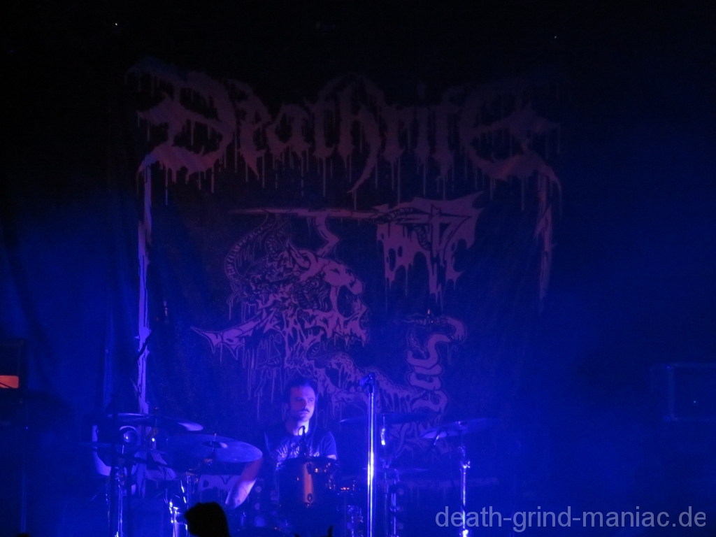 Die nächste Band hatte eine doch eher untypische Überraschung im Gepäck. Sowas habe ich auch noch nicht Live erlebt. Zombieslut zaubern nicht nur Death-Metal auf die Bühne sondern haben sich auch einfach mitten in der Show aufgelöst und sich als Baleful Abyss neugegründet. Selbst ihr Label war davon überrascht.