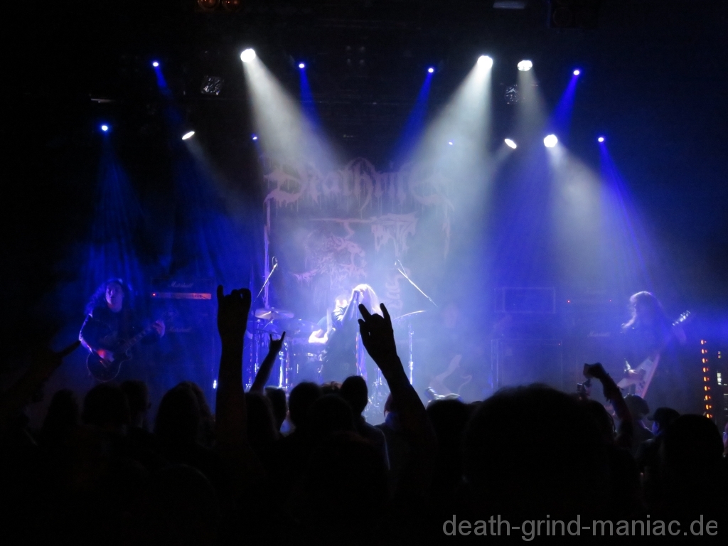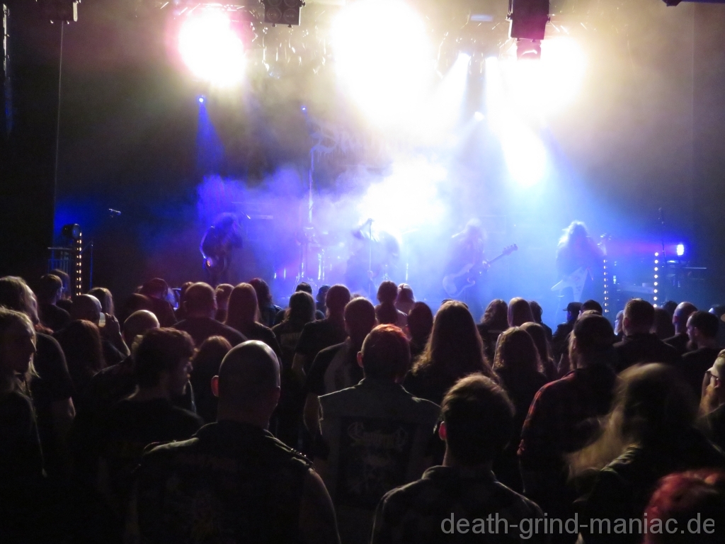 Fleshcrawl lieferte feinsten Old School Death Metal ab und zeigten wie der Abend so weitergehen wird. Einige nutzen die Zeit aber auch an den Essenständen vor der Halle02.