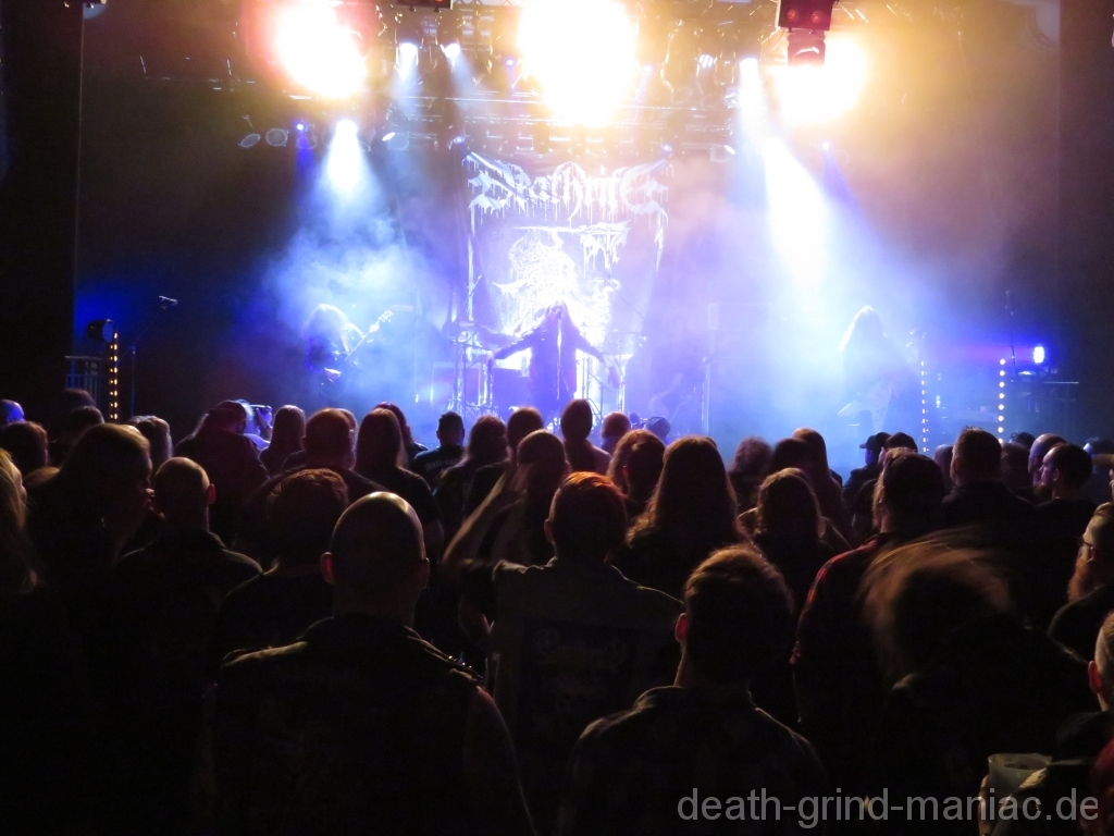 Nach dieser Überraschung standen dann aber auch schon die Old School Death Metaler Deathrite aus Berlin auf der Bühne. Mir haben sie nicht ganz so gefallen und ich nutze die Zeit für ein Bier und einer guten Unterhaltung mit Freunden.