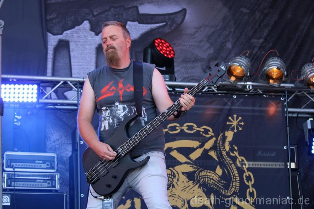 Der Samstag begann mit bärtigen Old School Death Metal. Slaughterday aus dem Norden kamen und weckten, nach Esmiralda, die letzten Schlafenden auf dem Platz! Souverän wussten sie wie man die Menge anheizen kann und muss! Immer wieder ein Vergnügen!