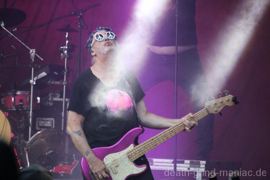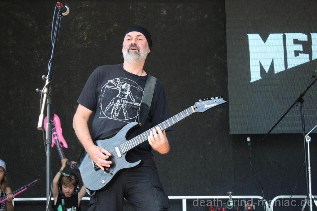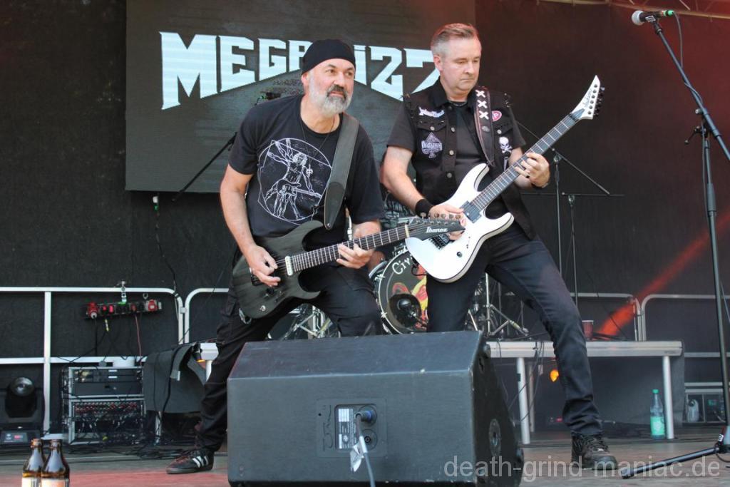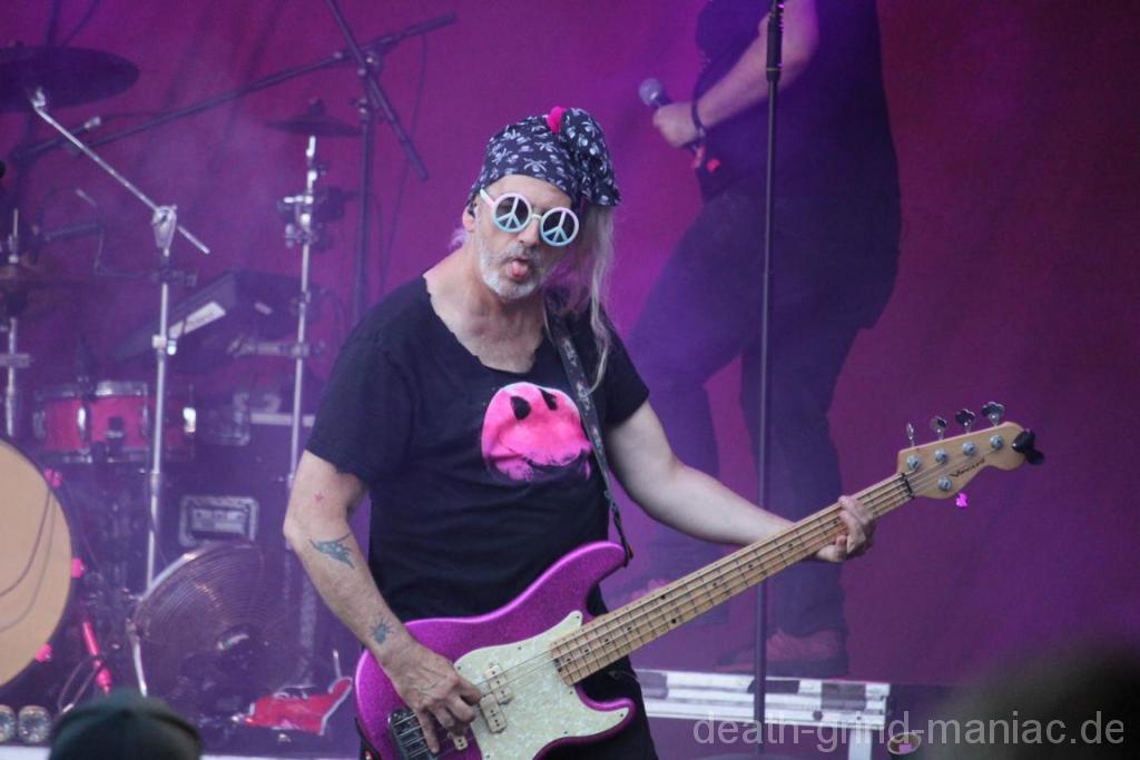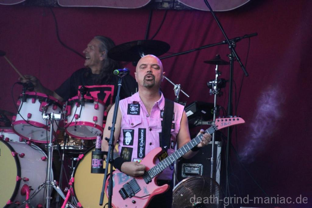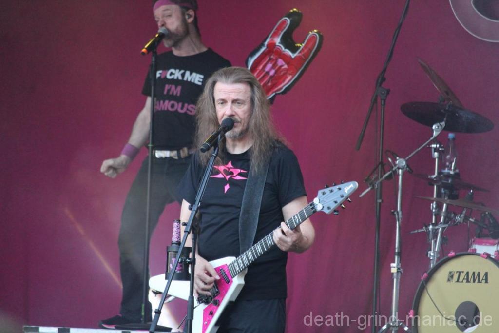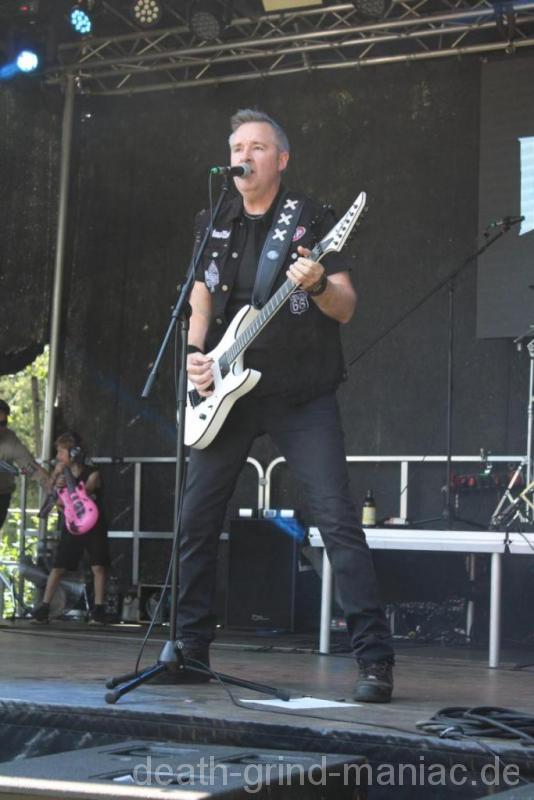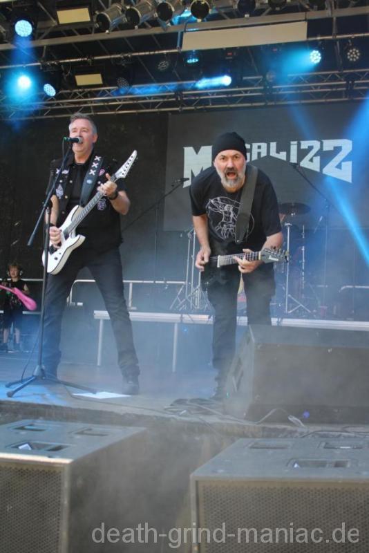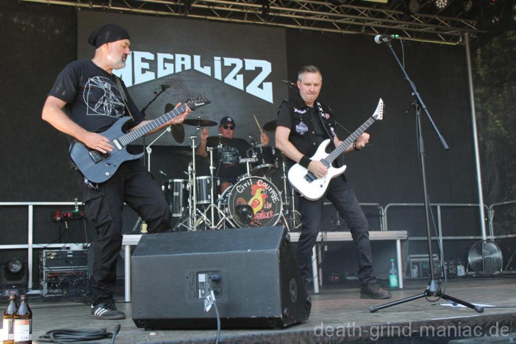 Megalizz, eine Old School Metal Band, die mal schneller und dann wieder gemäßigtes Tempo hinlegt. Gut anzusehen und zu hören. Manchmal haben sie irgendwie Alice Cooper oder Black Sabbath Parts drin versteckt. Bei weniger brennender Sonne wäre vorne bestimmt mehr los gewesen.