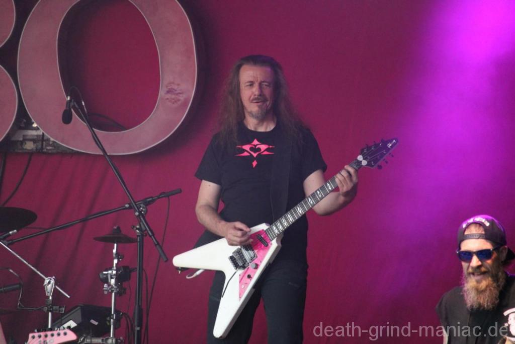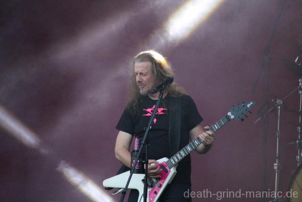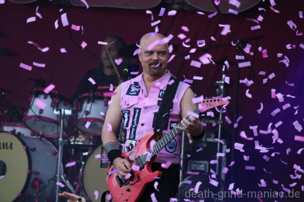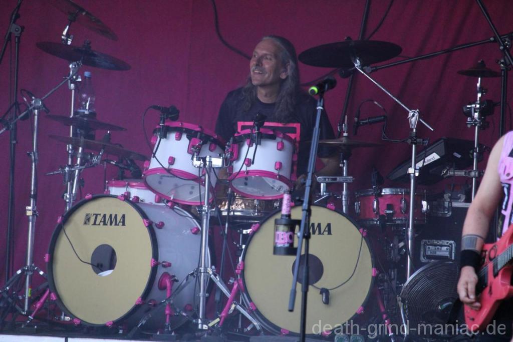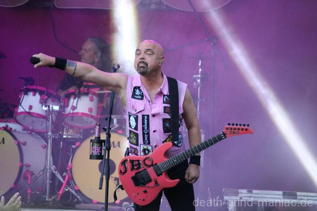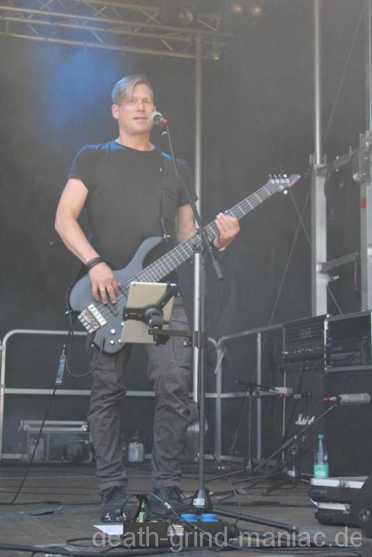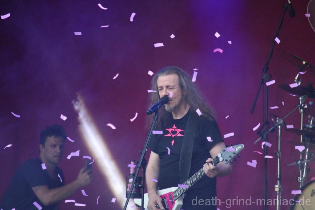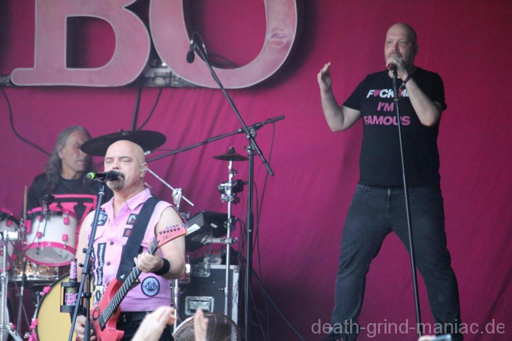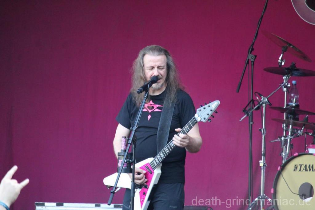 Megalizz, eine Old School Metal Band, die mal schneller und dann wieder gemäßigtes Tempo hinlegt. Gut anzusehen und zu hören. Manchmal haben sie irgendwie Alice Cooper oder Black Sabbath Parts drin versteckt. Bei weniger brennender Sonne wäre vorne bestimmt mehr los gewesen.