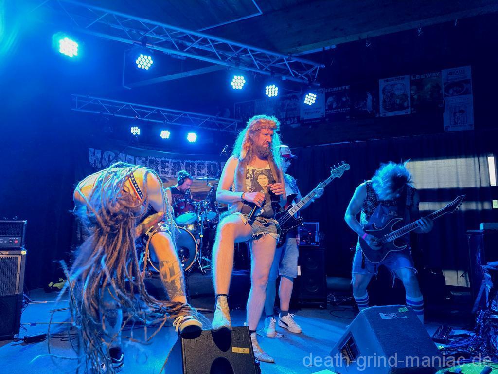 Mit SpankyHam wurde’s richtig heftig. Matze, bekannt von Meatknife, ballerte mit seinem neuen Projekt alles kurz und klein. Brutal, tight und mit der sympathischen Wucht eines Presslufthammers. Die Hütte vibrierte, der Boden klebte – genau so, wie wir’s lieben.