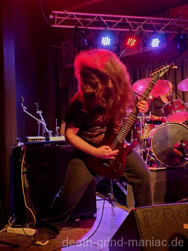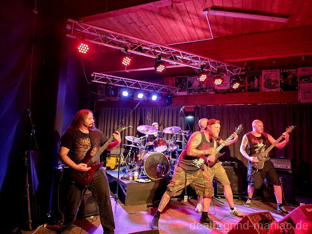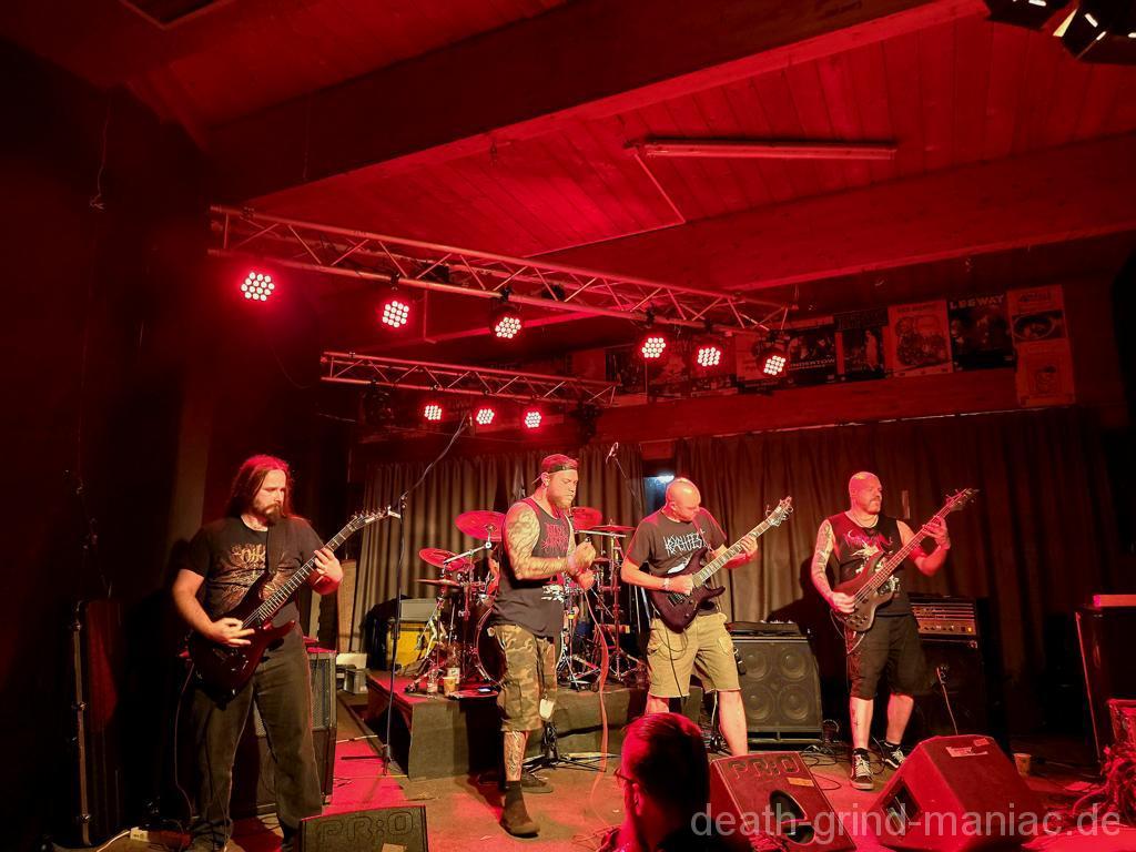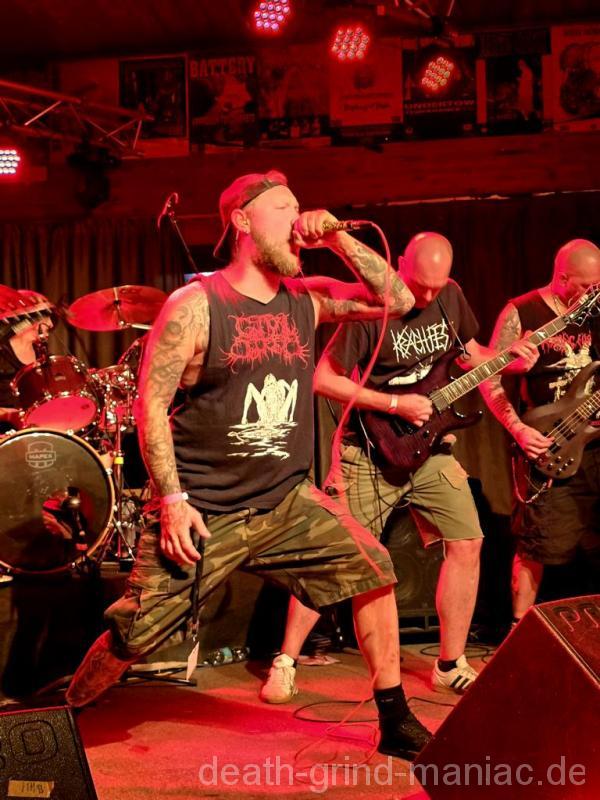 Den Opener machten niemand Geringeres als Deep Dirty selbst. Stefan, einer der Veranstalter, legte mit seiner Truppe los, als gäb’s kein Morgen. Der Saal war sofort auf Betriebstemperatur – Circle Pits, fliegende Haare, und der Mischer schob direkt alles auf Anschlag. So muss Grindcore-Start sein: laut, wild und direkt in die Fresse!