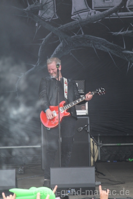 Am Mittwoch startete der Tag mit meinem Traditionellen Frühstück aus Jägermeister/O-Saft. Danach wurde das völlig überlaufene Spül-WC aufgesucht. Zu Top-Zeiten 45 Minuten Wartezeit. Hier sollte das Wacken nochmal nachlegen. Es gab definitiv zu wenige Dixis / WCs bei uns in der Nähe. Aber auch von anderen hörten wir selbiges. Dadurch verpasste ich auch gleich die ersten Bands. Die Deutschrock Band Brenner verpasste ich und hörte von weitem nur noch ihren letzten Song.